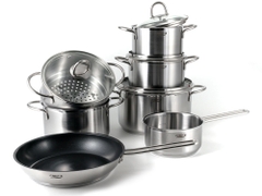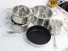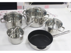 Nồi 5 đáy sử dụng được các loại bếp: từ, ga, ..., quai đinh tán, vung kính chịu nhiệt