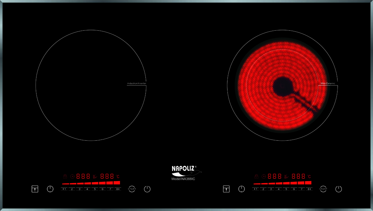 - Bếp điện từ Napoliz- 2 vùng nấu cảm ứng điện từ.