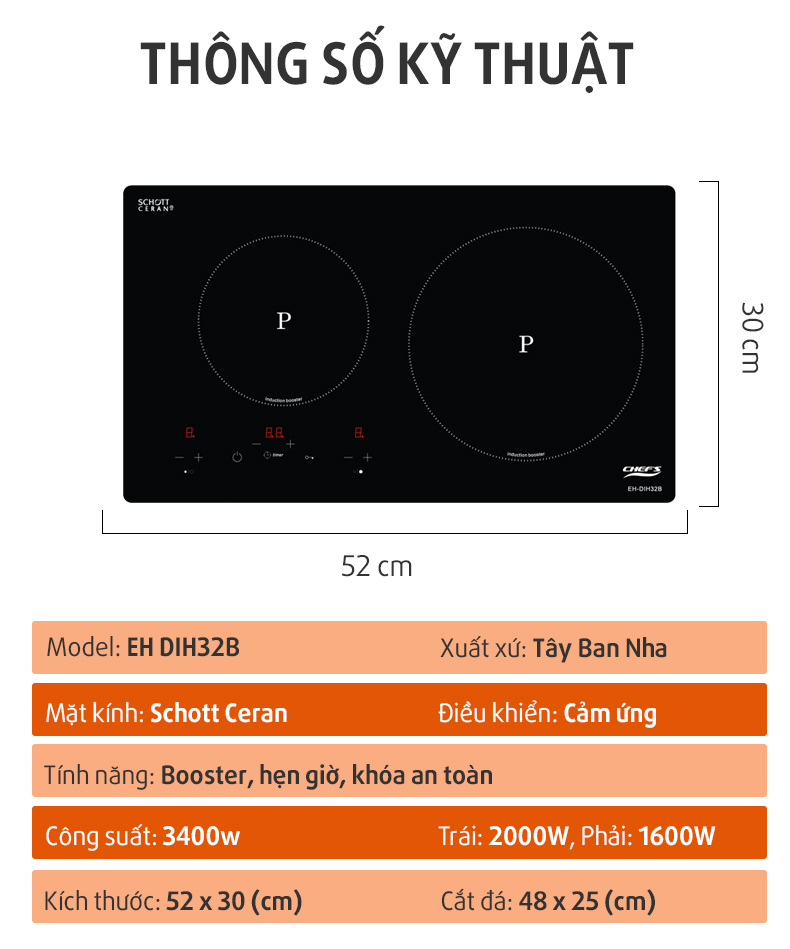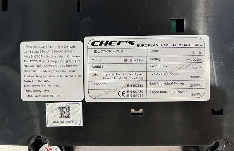 Thông tin bếp từ chefs EH DIH32B nhập khẩu Tây Ban Nha