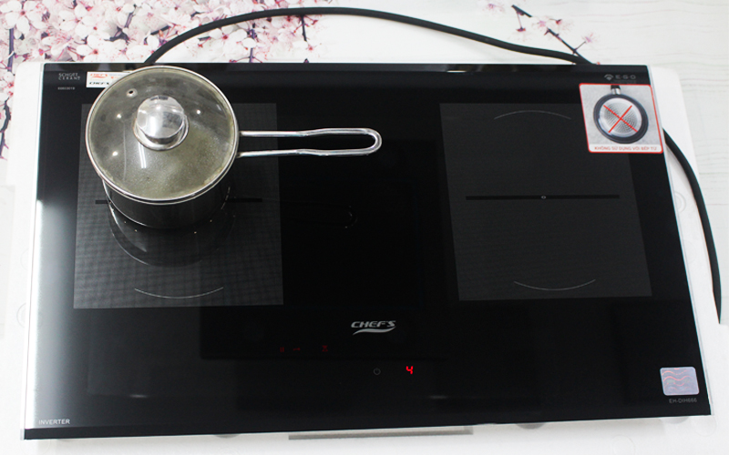 Chiếc bếp từ Chefs EH DIH666 hiện đại còn được thiết kế với hệ thống điều khiển cảm ứng dạng ẩn thực sự thông minh và khác biệt. Trên khu vực điều khiển của bếp người sử dụng chỉ nhìn thấy duy nhất phím bật nguồn của bếp mà không thấy bất cứ một phím ấn hay trượt nào khác, chỉ đến khi bật nguồn bếp để sử dụng thì hệ thống điều khiển này sẽ sáng lên với dạng hiện thị led biểu tượng màu đỏ rất rõ nét. Đây là một công nghệ điều khiển mới nhất, tiên tiến nhất mà chiếc bếp Chefs EH DIH666 mang đến cho người dùng những trải nghiệm thực sự khác biệt.
