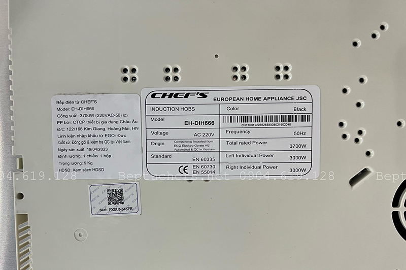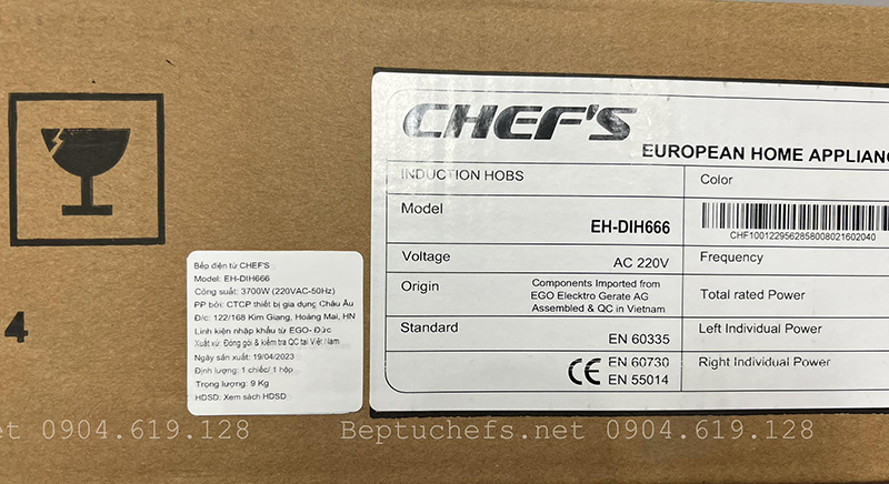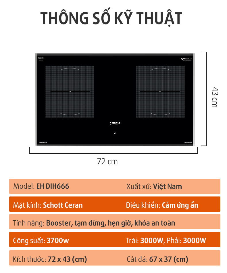 Thông số bếp từ chefs eh dih666