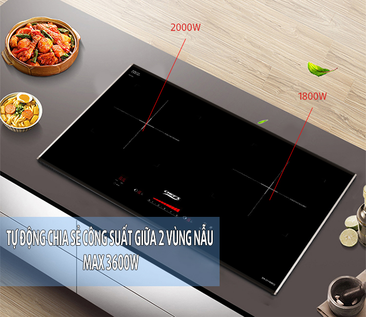 Bếp từ Chefs EH DIH866G được trang bị công nghệ tự động san công suất giữa các vùng nấu giúp bếp an toàn chống quá tải về điện, cũng như nâng cao mức độ ổn định lâu để sử dụng bếp lâu dài và công nghệ này cũng khiến bếp tiết kiệm điện hơn so với các mẫu bếp từ Tây Ban Nha khác.