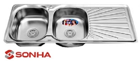 Chậu rửa bát Sơn Hà SH 2HB 1200 giống như phiên bản tiêu chuẩn của những chiếc chậu rửa bát 2 ngăn thông thường khác nhưng được thiết kế với kiểu dáng sang trọng, tinh tế bề mặt mượt mà kèm theo 1 bàn trái, phù hợp với mọi không gian bếp cuả bạn