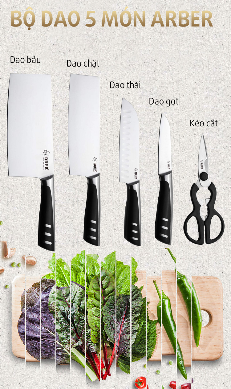 Một phương tiện không thể thiếu trong khu bếp của một gia đình là những chiếc dao để thái, chặt, cắt thực phẩm và trên thị trường hiện có rất nhiều bộ dao với nhiều chủng loại. Bộ dao 5 món Arber hiện đang nhận được nhiều sự quan tâm của các bà nội trợ, hôm nay hãy cùng mình đi tìm những điểm đặc biệt khiến bạn không thể chối từ bộ dao tiện dụng này nhé