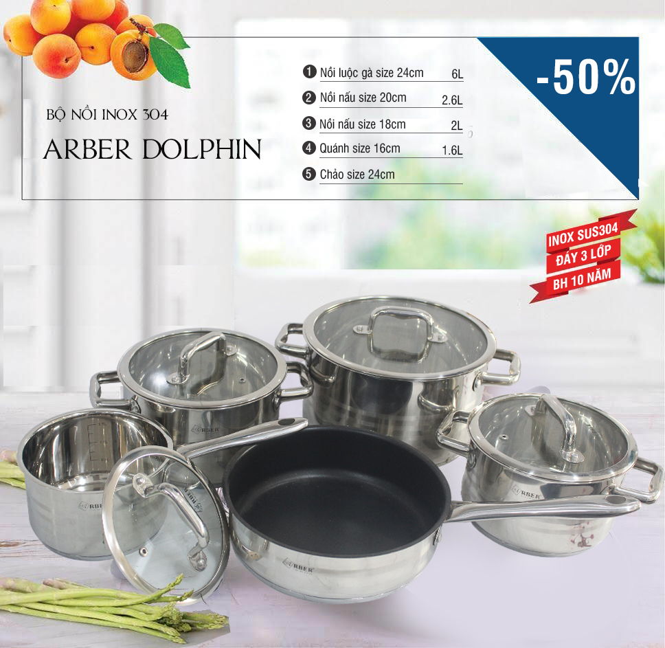 Bộ nồi Arber Dolphin được làm từ inox304 sang trọng, sáng bóng