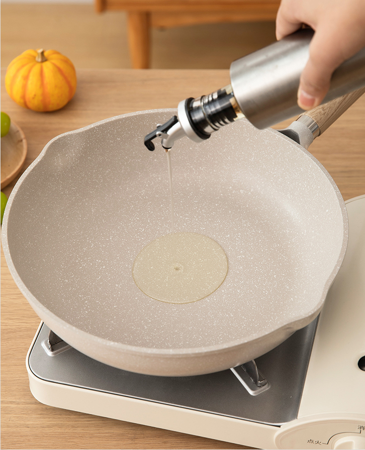 Nhiều chị em nội trợ có thói quen đợi chảo nóng rồi mới cho dầu vào. Tuy nhiên, cách này chỉ thích hợp với chảo bằng nhôm, gang. Với loại chảo chống dính, bạn hãy đổ dầu vào chảo trước khi bật bếp.