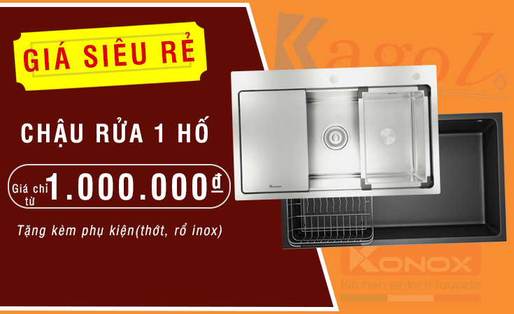 - Trong thời gian ưu đãi, Bếp KƯỜNG THỊNH giảm giá kịch sàn cho tất cả các mẫu chậu rửa bát 1 hố của các thương hiệu như Konox, Kagol...với mức giảm lên đến 50%.