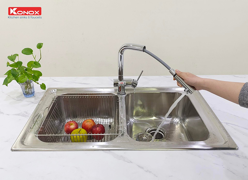 Chậu Konox KS8650 kèm vòi rút Konox