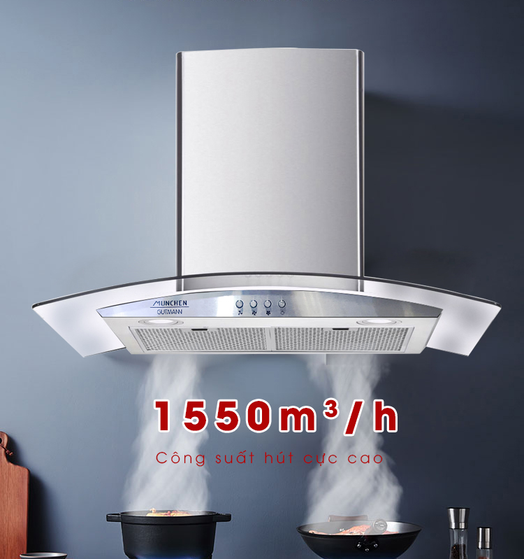 Máy hút mùi Munchen AM8122IX có công suất hút cực cao 1550m3/h cho khả năng hút mùi rất nhanh chóng