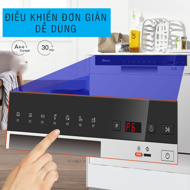 Máy rửa bát Texgio TG DTW558 được trang bị 7 chương trình rửa chuyên biệt, sẽ giúp bạn dễ dàng làm sạch các vật dụng nội trợ hàng ngày, đó là các chương trình rửa:
