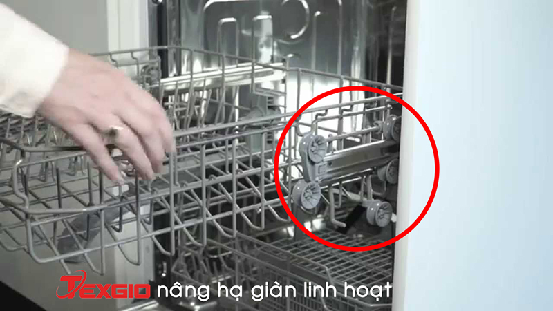 Bên cạnh đó các giàn rửa của máy đều có thế được di chuyển kéo ra đẩy rất nhẹ nhàng nhệ hệ thống bánh xe và ray trượt, thậm chí bạn còn có thế điều chỉnh được độ cao cảu giàn rửa giúp bạn dễ dàng thao tác khi sắp xếp các vật dụng cần rửa vào trong máy.