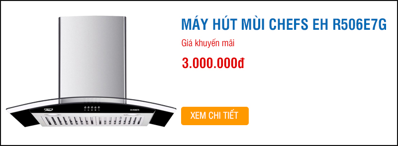 Chiếc máy hút mùi đầu tiên trong danh sách hút mùi giá rẻ giảm giá mà mình muốn giới thiệu đến các bạn đó là Chefs EH R506E7G.