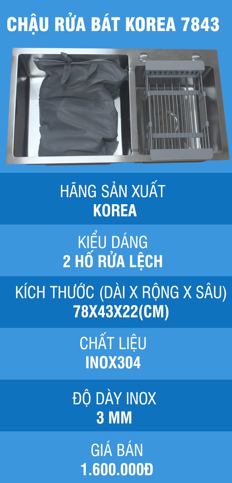 => Xem thông số chi tiết và giá bán chậu rửa bát Korea7843