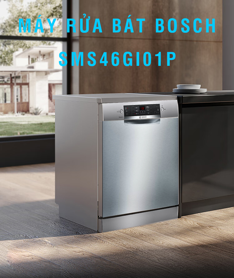 Bosch SMS46GI01P thuộc dòng máy rửa bát độc lập seri4, có thiết kế gọn gàng hiện đại, với tông màu inox chủ đạo, dễ dàng lắp đặt ở mọi vị trí. Máy được tích hợp 6 chương trình rửa (Rửa chuyên sâu tăng cường 70°C (IntensivePlus), Rửa thông thường 65°C (Normal), Rửa tự động 45 - 65°C (Automatic), Rửa tiết kiệm 50°C (Eco), Rửa nhanh 45°C (Quick), Rửa tráng (Pre Rinse) ), sử dụng chuyên biệt cho từng loiaj đồ dùng, từng mức độ vết bẩn.