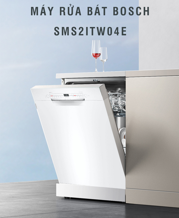 Máy rửa bát Bosch SMS2ITW04E sở hữu thiết kế độc lập, sang trọng phù hợp nhiều không gian nội thất, toàn bộ thân máy bằng thép không gỉ màu trắng sữa độc đáo. Máy rửa bát rửa được khoảng 3 - 4 bữa ăn Việt trong 1 lần và tiêu thụ khoảng 10.5 lít/lần rửa. Thiết bị vận hành êm ái với độ ồn của máy khoảng 42dB.