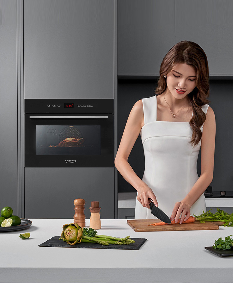 Lò nướng Chefs có thiết kế hiện đại, kiểu dáng âm tủ sang trọng với 2 màu chủ đạo là đen và inox phù hợp cho mọi không gian bếp. Bảng điều khiển của lò được hãng thiết kế dạng cảm ứng với các nút bấm dễ dàng sử dụng và thao tác. Ngoài ra, lò nướng của Chefs cũng có đèn chiếu sáng trong khoang lò giúp dễ dàng quan sát suốt quá trình nấu nướng.