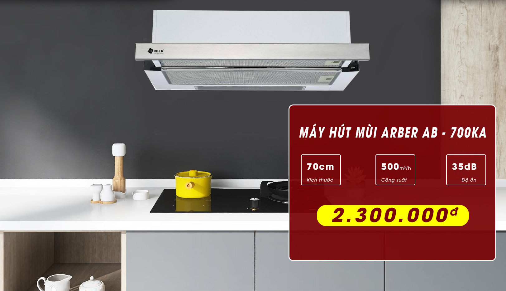 Hiện tại máy hút mùi Arber AB-700KA đang được phân phối chính hãng tại showroom Bếp Kường Thịnh với gia chỉ 2.300.000 đồng, với những ưu đãi thêm là: