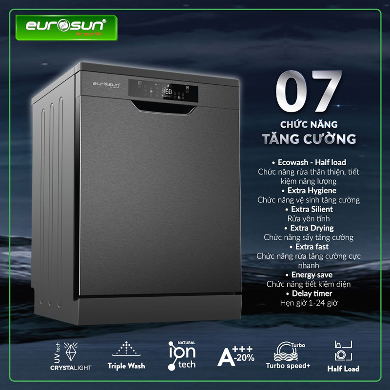- Vệ sinh tăng cường - Extra Hygiene - Sấy tăng cường- Extra Drying - Rửa nhanh- Extra fast - Tiêt kiệm điện- Energy save |