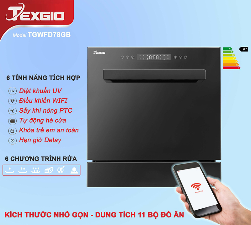 | Model: TGWFD78GB | WIFI, UV, Sấy tăng cường ExtraDrying, Tự động hé cửa AutoDoor, Khóa trẻ em, Hẹn giờ Delay |