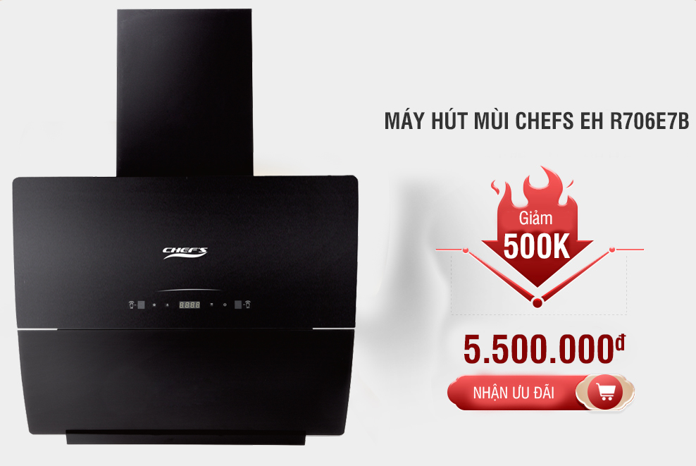 Máy hút mùi Chefs EH R706E7B giảm 500.000 đồng, giá còn 5.500.000 đồng
