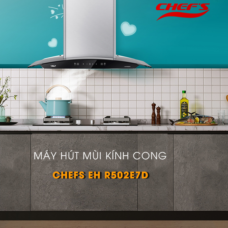 Máy hút mùi kính cong Chefs EH R502E7D kích thước 70cm, có thiết kế đơn giản và đẹp