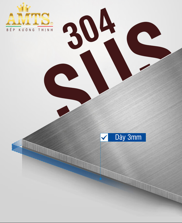 100% mẫu chậu rửa AMTS đều được gia công từ inox 304 (18/10) có độ dày tới 3mm, chất liệu cao cấp bền bỉ an toàn cho sức khỏe, giúp chậu không bị hoen gỉ, biến đổi màu khi gặp chất tẩy rửa, dầu mỡ, giúp cho sản phẩm giữ được độ bóng sáng theo thời gian.