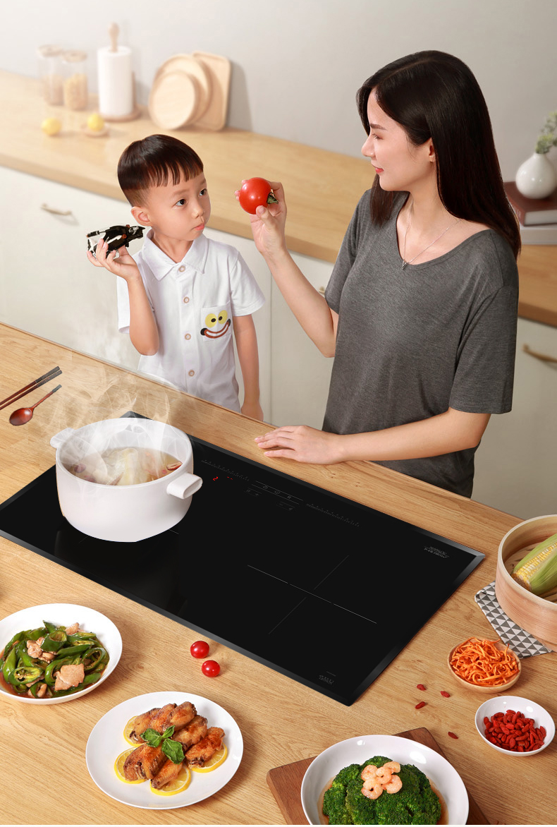 Tổng công suất 4800w (trái 2400w, phải 2400w) với các tính năng đi kèm như tùy chỉnh 9 mức công suất đun nấu, booster, hâm nóng 70,80,90 độ C, tạm dừng, hẹn giờ tắt, khóa trẻ em, tự ngắt khi không có nồi hoặc bị tràn nước.
