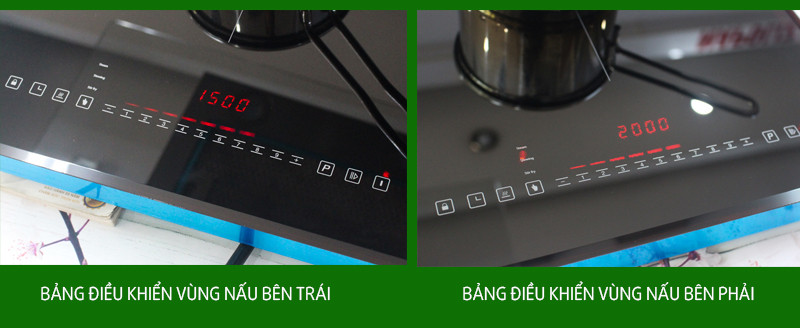 Với việc trang bị 2 bàn phím điều khiển cảm riêng cho 2 vùng nấu trên bếp, mang đến lợi thế lớn trong việc tiếp cận của người sử dụng đối với bếp. Các phím điều khiển, chọn chế độ, chức năng được tách riêng, kết hợp với màn hình hiển thị Led màu đỏ sắc nét, khiến việc thao tác của người nội trợ trở nên đơn giản và dễ dàng hơn bao giờ hết.