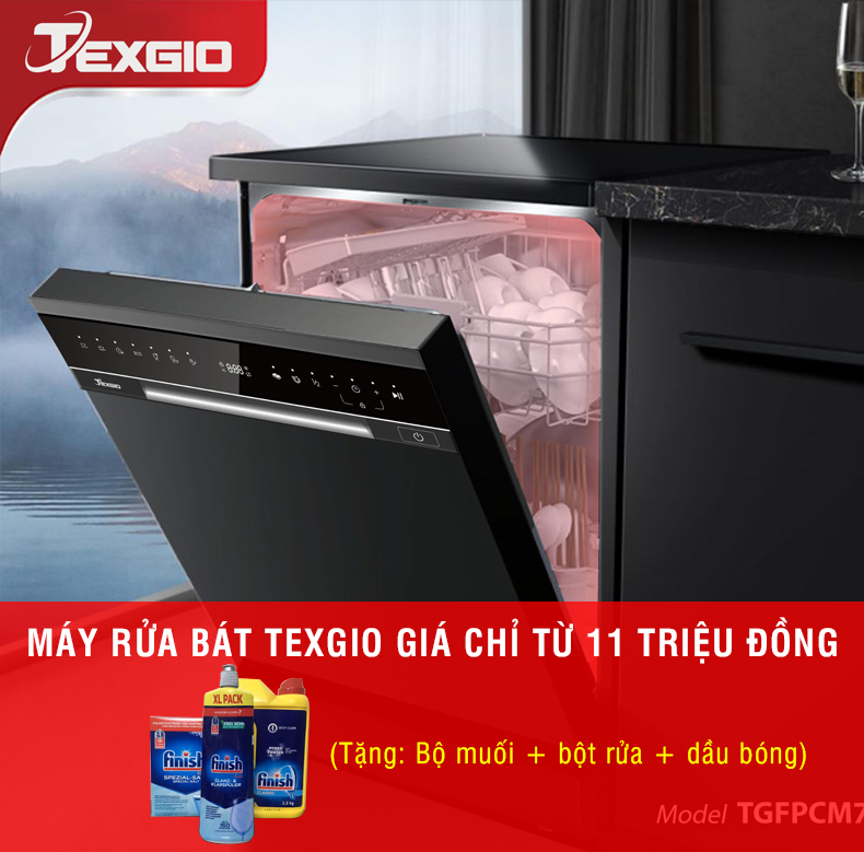 Máy rửa bát Texgio có sấy khô khí nóng PTC giá khuyến mãi chỉ từ 11 triệu đồng kèm quà tặng