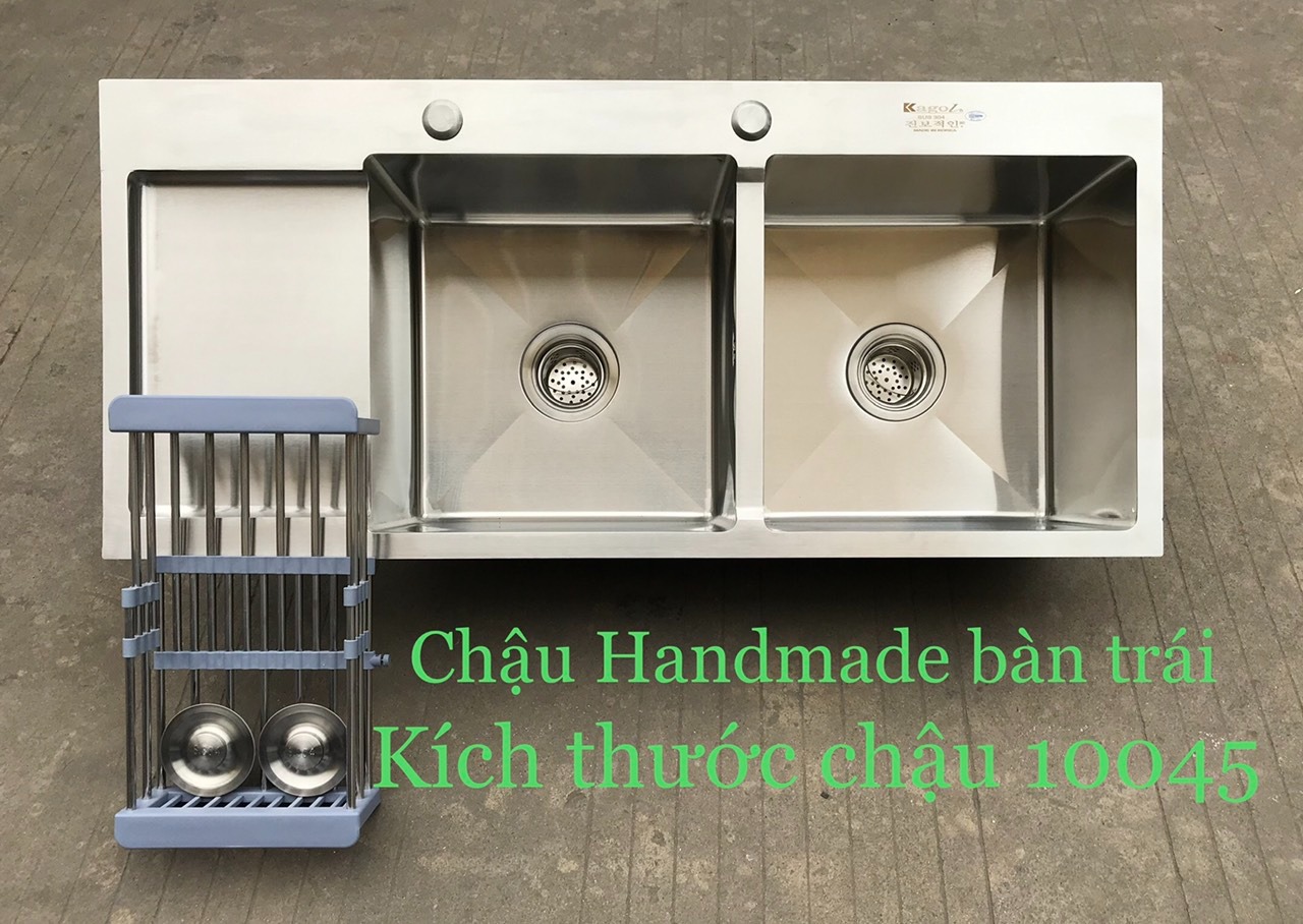 Ấy vậy mà Kagol lại có cả 2 mã bàn trái, cả 1 hố và 2 hố, tuy mỗi mẫu chỉ có 1 mã nhưng cũng đã đủ để giúp nhiều người đang vất vả tìm kiếm mẫu bàn trái trong thời gian dài cảm thấy mừng vô cùng. Với dòng 1 hố kích thước 70 x 40 (cm), kích thước 2 hố 100 x 45 (cm). Đây cũng là 2 kích thước phổ biến trên thị trường. Chậu Inox 304, thành chậu dày 3mm, xi phông và ống thoát đều được làm từ chất liệu tốt, bền, chống nóng tốt, ngăn mùi hôi tanh từ cống.