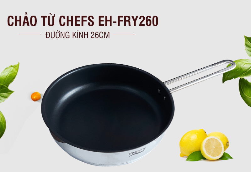 Mẫu chảo từ Chefs EH-FRY260 là một sản phẩm đồ nấu ăn được sản xuất trong nước với công nghệ hiện đại, toàn bộ chảo làm từ inox 18/10 sáng bóng, siêu bền, ít bám dính, dễ vệ sinh. Tay cầm inox được tán chắc chắn và cách nhiệt tuyệt đối, không bị nóng hoặc gây bỏng khi cầm nắm trong khi đang sử dụng (trên bếp từ), bên trong chảo được phủ một lớp chống dính siêu bền không bị bong tróc bởi nhiệt độ cao, giúp thực phẩm không bị dính sát khi chiên rán và đặc biệt không sản sinh các chất độc hại khi gặp nhiệt độ cao.