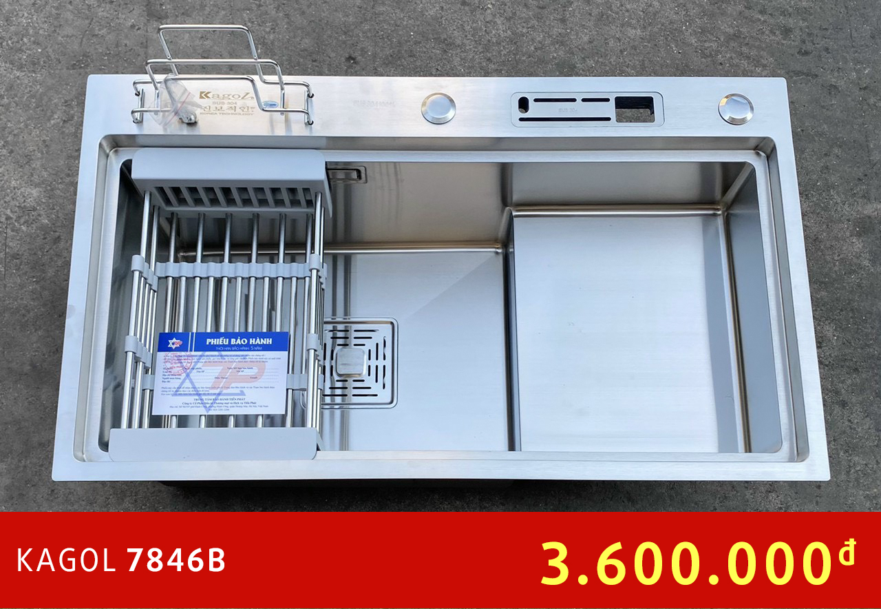 Model chậu rửa bát Kagol 7846B được thiết theo một phong cách rất độc đáo, phần lòng chậu không phẳng mà được giật 2 cấp dạng bậc thang mang lại sự mới lạ và tiện dụng cho người dùng. Kích thước 78x46(cm), khá lớn giúp bạn dễ dàng rửa các vật dụng lớn như xoong, chảo.