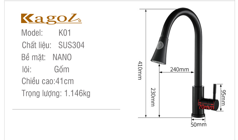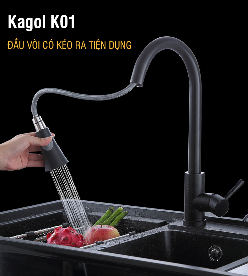 Vòi rửa bát nóng lạnh bằng inox 304 phủ NANO màu đen sang trọng.