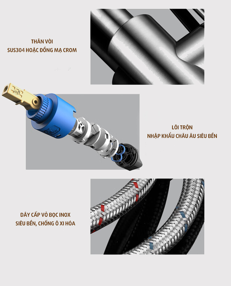 Các mẫu vòi rửa bát Kagol được chế tạo từ các vật liệu bền bỉ và cao cấp như đồng, hoặc inox 304 , những vật liệu này không bị ảnh hưởng tác động của nước làm tặng độ bền cũng như độ thẩm mỹ cho vòi trong quá trình sử dụng. Bên cạnh đó hãng còn trang bị cho các sản phẩm của mình những linh kiện đi kèm cao cấp như lõi trọn siêu bền, dây cấp nước được bọc bằng các sợi thép không gỉ, tránh được chuột cắn hoặc bị đứt.
